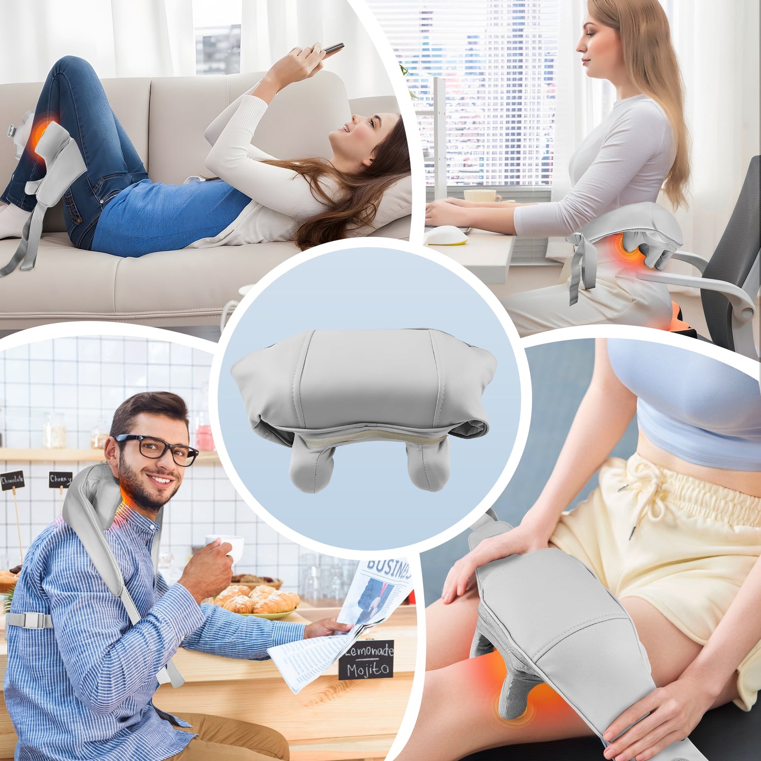 Nuestro masajeador imita las manos de un masajista profesional, brindando un masaje profundo en los tejidos y un calor relajante para liberar nudos rebeldes y tensión muscular.